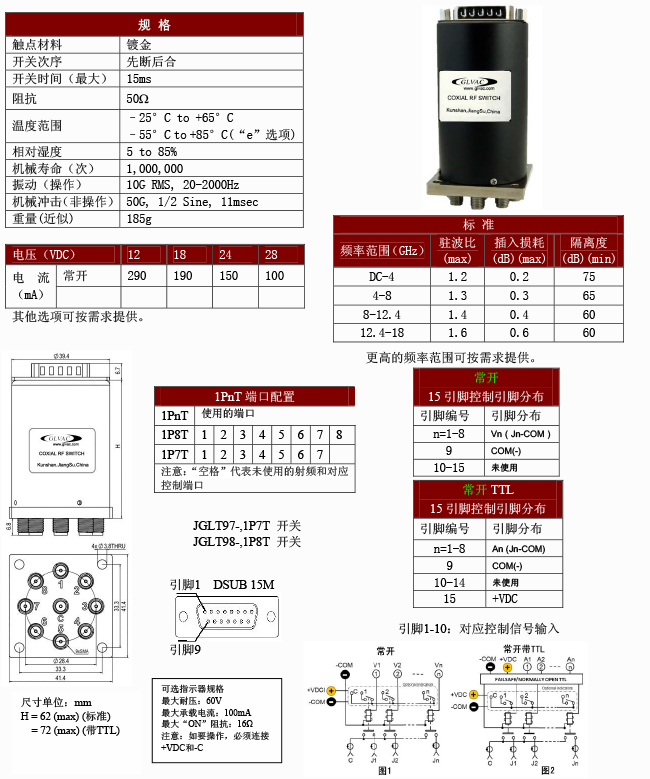 射频同轴继电器JGLT88T-S18-常开或自保持