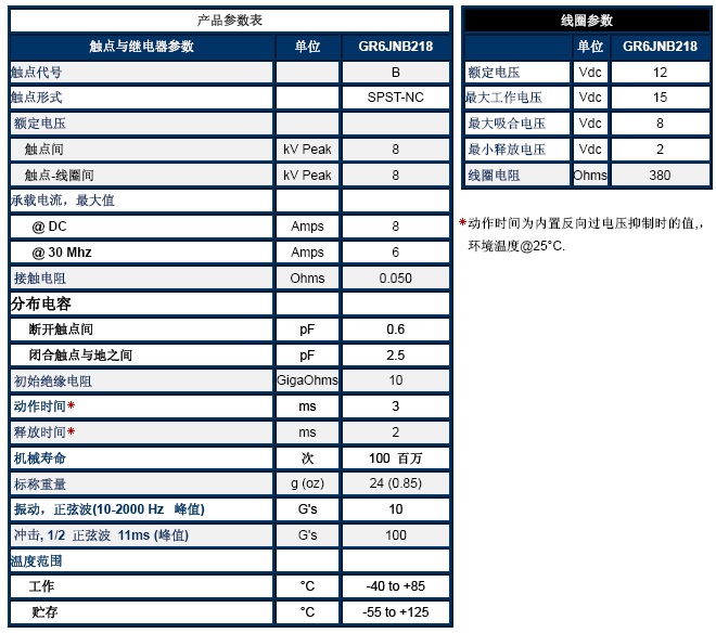 单刀单掷继电器GR6JNB218 体积小,可以处理射频大功率。 高压端焊接连接,与线路板具有良好的绝缘。 机械寿命高达1亿次,速度快。 真空介质,接触电阻低而且稳定。