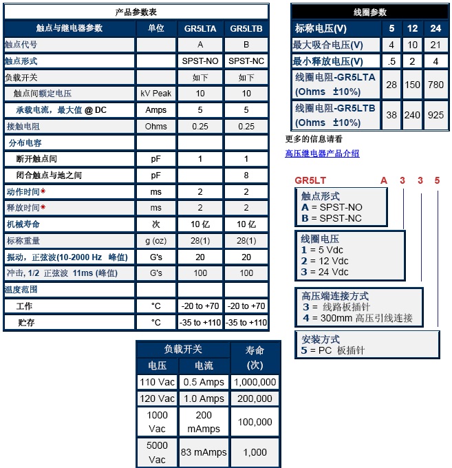 单刀单掷继电器GR5LTA 体积小的射频大功率高压真空继电器 线圈5V,12V,24V可以选择。 线路板插针安装或者高压引线连接,方便用户安装及连线。