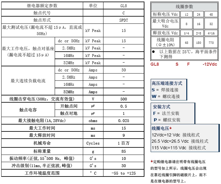 保持型线圈,低消耗功率,在线圈无电压时确保继电器保持其最后的工作状态,耐磨损钨触点,可以热切换负载,真空介质有效灭弧。两种可选安装方式,法兰安装或螺母安装。 高压端焊接连接或用螺钉连接可以方便连接。