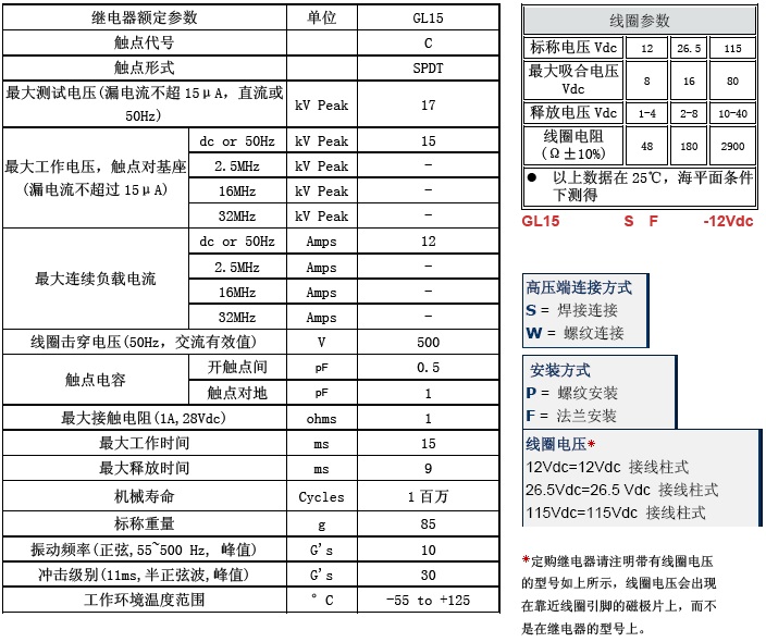 继电器产品总表 您现在的位置:首页 >> 产品介绍 >> 单刀双掷继电器GL15