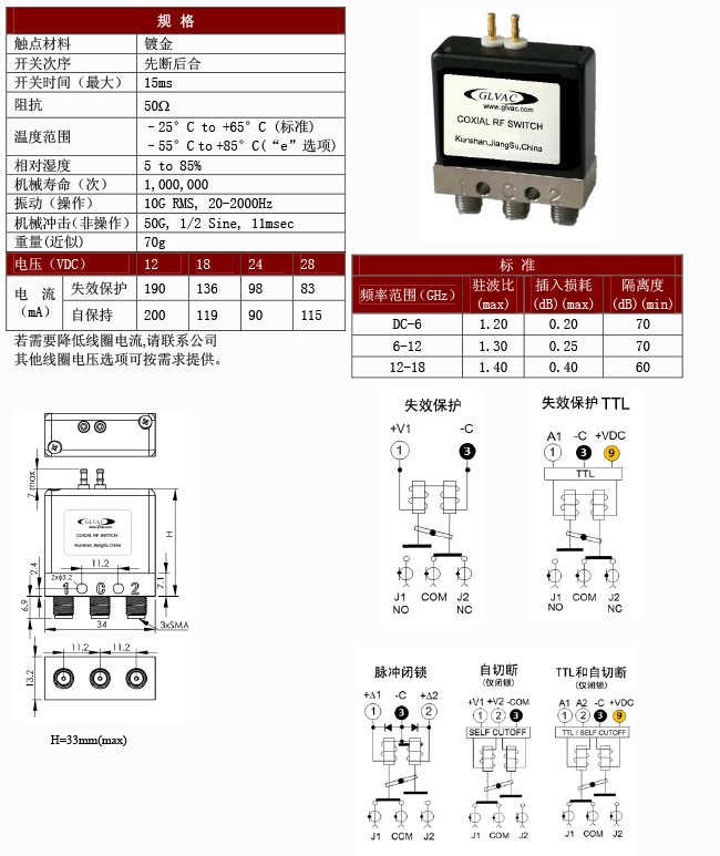 射频同轴继电器JGLT1-S(min)-失效保护或自保持