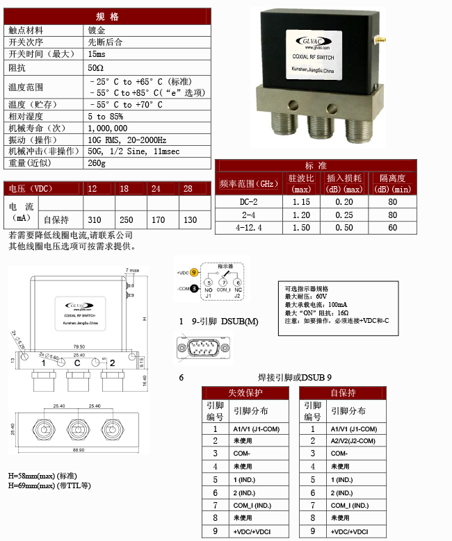 射频同轴继电器列表