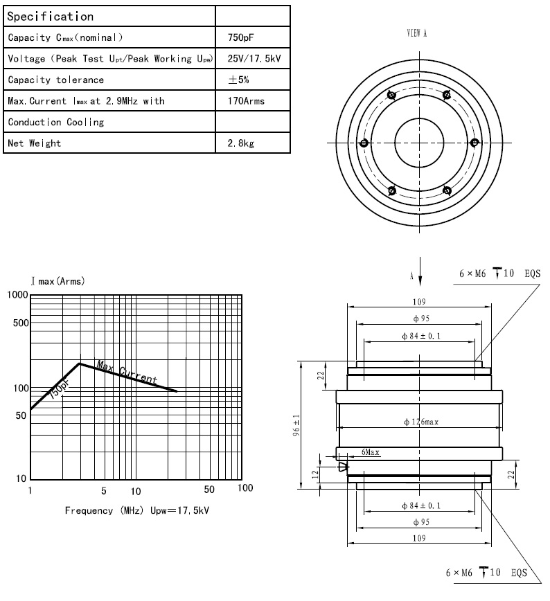 CKT750/17.5/170(II)型固定陶瓷高压真空电容器采用陶瓷外壳、真空介质、具有耐压高、体积小、Q值高、性能稳定可靠广泛用于感应加热、介质加热、通讯、广播等设备。